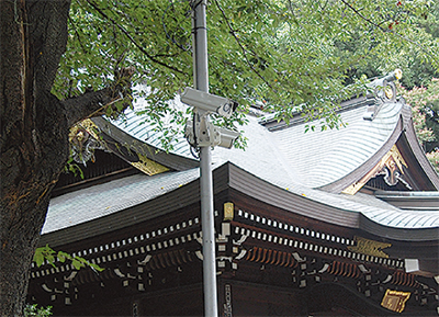 同神社では、賽銭箱の盗難事件やお札の返却倉庫への不法投棄、しめ縄用稲田の苗床の損壊や栽培種籾の盗難等が発生。それらの犯罪、いたずらを未然に防ぎ、神社の安心・安全を維持するために防犯カメラの設置に至った。