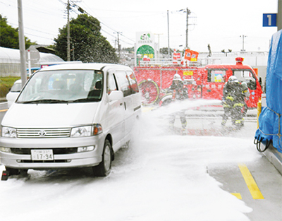 訓練には4つの消防隊と事業所の5人の従業員が参加した。従業員が給油中に誤ってガソリンをこぼし着火。従業員が119番通報、初期消火を実施したが延焼拡大したという想定のもと行われた。各隊が出動し、泡放射による消火訓練を行った。