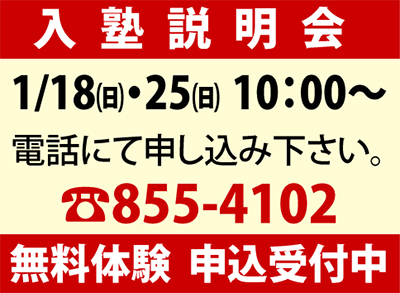 ■個別でも入塾の説明を実施している。電話にて気軽に申し込みを(PM2時〜)