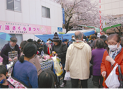 さぎ沼商店会(築野千明会長)主催の「第6回さぎ沼さくらまつり」が4日、駅前特設会場で開かれた。当日は雨が心配されていたが天候も持ち堪え、多くの地域住民が来場し、賑わいを見せた。