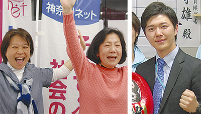 当選後、本紙の取材に対し持田氏は、「経済、産業、教育、安全・安心を築く土壌を作り、神奈川として発信をしていきたい」と語り、飯田氏は「身を切る改革に向け、知事退職金の計算方式見直しや議員定数削減に取り組む」とコメント。佐々木氏は「生活課題を解決するために政治を道具とし、皆さんの声が活きる街にします」と話した。