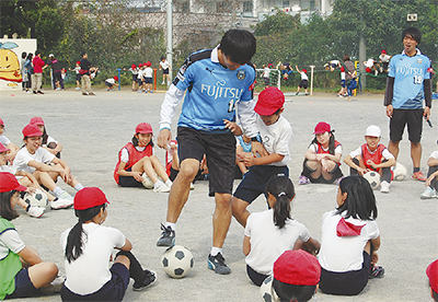 参加した佐藤ここわさん(小6)は「今までサッカーをあまりしたことがなかったが、直接プロの指導を受けられ楽しかった。自分の夢についてもこれから考えていきたい」と話した。