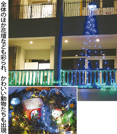 宮崎台駅近くにあるマンション「メゾン・ド・バッハ」が、今年もクリスマスイルミネーションで彩られた。オーナーの都倉八重子さんが昨年から始めたもので、今年はさらにパワーアップした5000球以上のLED電球が道行く人を楽しませている。都倉さんは「マンション内には小児科や保育園もあり、特に子どもたちに喜んでもらえたらうれしい」と話している。