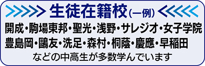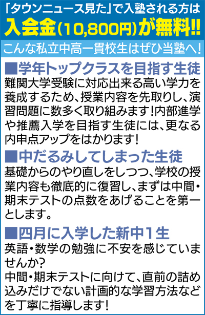 同塾の魅力は講師陣の質の高さ。指導に対する意識の高さはもちろん、生徒が通うどの学校のテキストにも対応でき、付け焼刃では決してできない「本物の指導」ができる。だから、難関大学受験に向けての実力養成に加え、学校の中間・期末テストや、附属校の内部進学テストに対して的確な指導で成績を伸ばすことができる。現在、そのタノクライズムが実感できる体験授業を受付中。詳細はお気軽にお電話で。