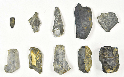 区内菅生ヶ丘にある鷲ヶ峰遺跡から出土した旧石器時代の石器群が先月、川崎市重要歴史記念物に指定された。市担当者は「市内で10カ所しかない旧石器時代の遺跡の中でも旧石器人の生活が良く分かる貴重な石器」と話す。現在、市民ミュージアム(中原区等々力)で常設展示されている。