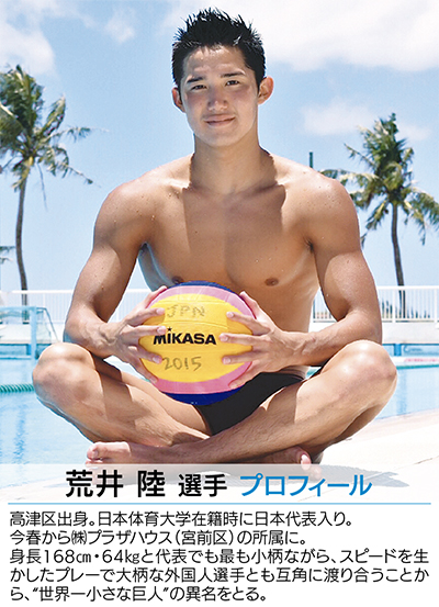 高津区出身で宮前区の(株)プラザハウスに所属する水球男子日本代表メンバーの荒井陸(あつし)選手が、いよいよ日本時間8月6日(土)から始まるリオ五輪で世界に挑む。リオに向かう海外合宿に出発の直前、大舞台を前にした心境などを聞いた。