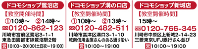ドコモショップ「鷺沼店」「溝の口店」「新城店」の3店舗で