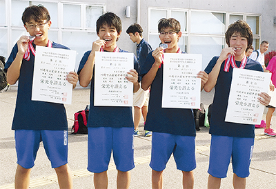 市立宮前平中学校水泳部の400mメドレーリレーチームが、新潟県長岡市で8月17日〜19日に行われた第56回全国中学校水泳競技大会で2位、銀メダルを獲得した。