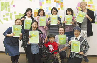 市民グループ「みやまえ子育て応援だん」は「子育てにやさしいまちの空気をつくる」をキャッチフレーズに活動している。昨年8月からは子育てサービスを提供する事業所、施設、団体などの発掘を進めながらサービス提供の目印としてステッカーを作成。「ミルク用のお湯の提供」「授乳室あり」「おむつ交換場所の提供」といったサービス内容を協力店にステッカーに書き込んで掲示してもらうことで母親らの外出支援を進めてきた。現在、協力店はおよそ50店舗までに増え、随時フェイスブック等で案内している。
