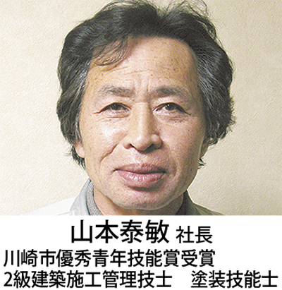 創業以来、塗装一筋の地元企業として川崎市優秀青年技能賞の受賞歴もある『株式会社 ヤマト建装』。山本泰敏社長は「扉や門、階段など家のちょっとした部分塗り替えからご相談ください。こんなに綺麗になるんだ、と笑顔でお客様に言ってもらえるように心を込めて施工いたします」と話す。