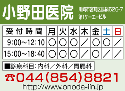 馬絹(宮崎台駅徒歩8分)にある「小野田医院」が、現在看護助手を若干名募集している。