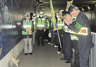 宮前区と高津区の合同防犯パトロールが1日、梶ヶ谷地域で行われた。同パトロールは2006年に発生した第2梶ヶ谷架道橋の殺人事件を風化させず、また犯罪防止の意識を高めることを目的に09年度より毎年行われている。