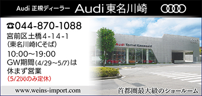 東名川崎ICそばに首都圏最大級のショールームを構えるアウディ正規ディーラー「アウディ東名川崎」。同店では4月29日(祝)〜5月7日(日)、開店4周年を記念したフェア「サンクス4thアニバーサリー」を開催する(5月2日は定休日)。