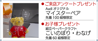 もちろん最新の試乗車も多数用意されており、アウディを知り尽くしたスタッフが乗り換えの相談に乗ってくれる。「期間中はご来店プレゼントをご用意しております。お子様向けのプレゼントもございますので、ぜひご家族でご来店ください」と店長の長谷川誠さん。