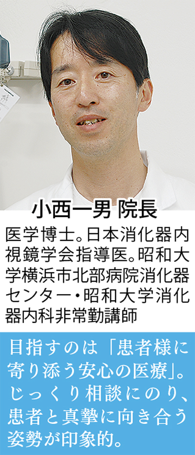 鷺沼駅近くで地域医療に取組む「こにしクリニック」。苦痛の少ない胃・大腸内視鏡検査を実施している。今回は同院の理念や姿勢を小西一男院長に聞いた。