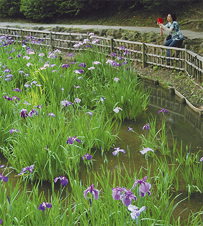 梅雨時に咲くハナショウブが今月2日、生田緑地の菖蒲園で見ごろを迎えている。=写真。