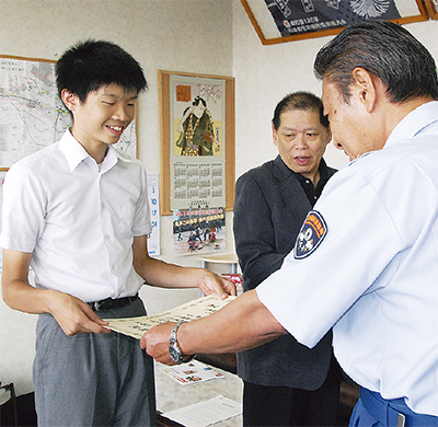 市立犬蔵中学校(小沼謙一郎校長)3年の土橋(どばし)竜治君(15)が、自宅で心肺停止状態になった父親に蘇生術を施して命を繋いだ。竜治君の勇気ある行動に対し、宮前消防署の金子智哉署長は5月31日に表彰状を授与。学校が授業で行っている救命講習が奏功した。