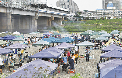 東急田園都市線「二子新地駅」徒歩5分とアクセスの良さで人気の多摩川緑地バーベキュー広場(高津区瀬田先)。以前は利用者によるゴミの投棄や深夜の花火、騒音などの迷惑行為が問題となっていたが、市は2011年に都市公園条例を改正。有料のバーベキュー広場としてオープンし、委託を受けた民間業者が管理運営やゴミ処理などを行っている。多摩川河川敷のうち、市が管理する多摩川緑地ではこの広場以外の火気の使用は禁止で、バーベキューや花火はできない。ただ、河川敷は市の管理地のほか、国有地や民有地が入り組んでいるところも多く、ゴミ投棄などが問題になっている場所もある。