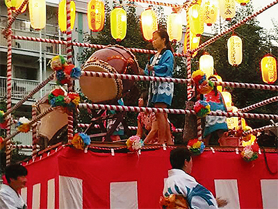 子ども太鼓「野川南台盆太鼓クラブ」が先月28日に行われた、野川南台団地の盆踊りで演奏を披露。50周年の節目を迎えた同自治会の盆踊りに華を添えた。