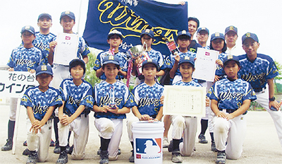 大会には、連盟に所属する7チームが出場(合同含む)。花の台ウイングスは1試合目、馬絹・宮崎合同チームとの対戦で最終回でエラーが絡み4失点するも、エースが踏ん張り7対4で勝利。勢いに乗って2試合目、川崎・高田合同チーム戦では25対0で大差をつけて勝ち進んだ。決勝戦では有馬ドリームズを8対1で下し優勝を決めた。