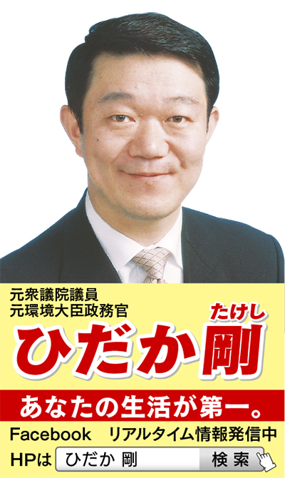 元衆議院議員元環境大臣政務官 ひだか剛(たけし)
