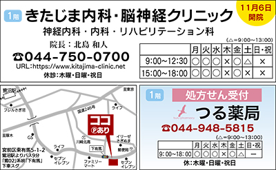 きたじま内科・脳神経クリニック、つる薬局が開業