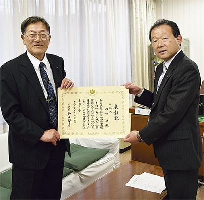 今年度の自治会等地縁による団体功労者への表彰で、自治会、町内会等の団体の代表者として長年在職し、地域活動を通じて良好な地域社会の維持、形成に顕著な功績があった人物に贈られる。