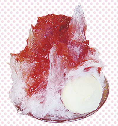 長野県から取り寄せた天然氷と天然シロップを使用。サクサクと軽い口触りですぐに溶けていく。バニラアイスともマッチし、いちご・ぶどう・マンゴー・りんごが楽しめる。