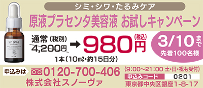 創業23年の銀座エステサロン「スノーヴァ」から、自宅でシミやシワのケアができる高純度プラセンタ美容液が登場。