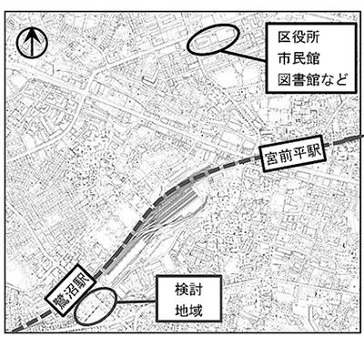 市の公表を受けて同駅周辺の町内会・商店会長等で構成する再開発推進協議会の持田和夫会長は「交通機能が充実すれば区役所だけでなく図書館や市民館の利用率アップも期待できるのでは」と話している。