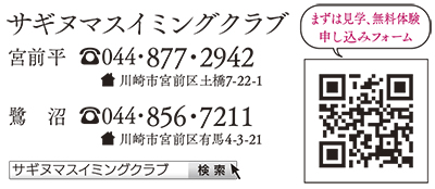 1973年創業、宮前平と鷺沼にプールを構えるサギヌマスイミングクラブ。「健やかな身体」と「やすらいだ心」を育む『健體康心』を理念に、同クラブが目指しているのは、0歳(生後6カ月)〜100歳まで水泳を通して人生が楽しめるクラブづくりだ。
