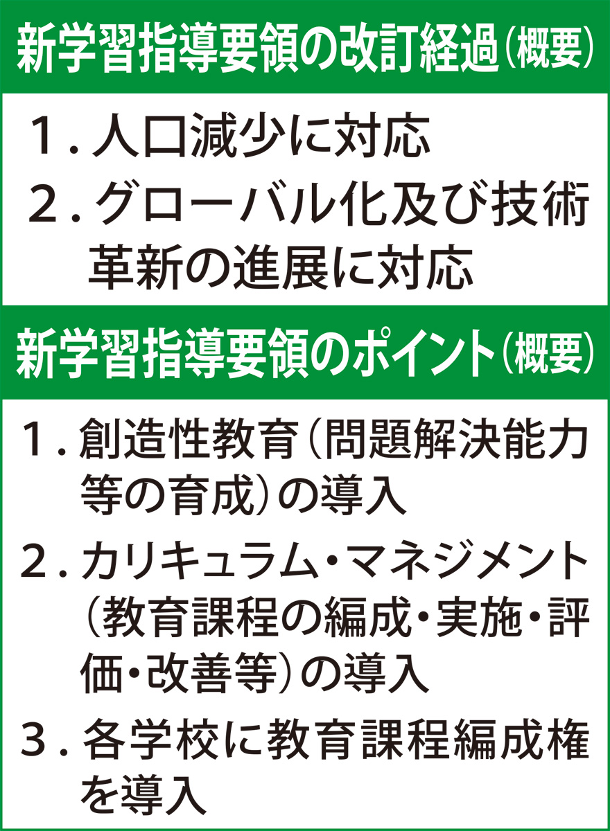 教育計画・教育目標・時間割等の編成権限が、各学校に与えられ、各学校の特色を出せるようになった。金太郎飴教育から特色教育に変貌する。