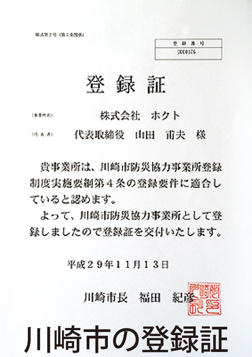 山田―当社はLPガス販売を行っている会社ですが、川崎市の防災協力事業所に登録させていただきました。地域活動を通じて地域との交流を深め、有事の際はできる限りで防災活動に参加し、被害の軽減や地域生活の早期復旧のために協力する制度です。