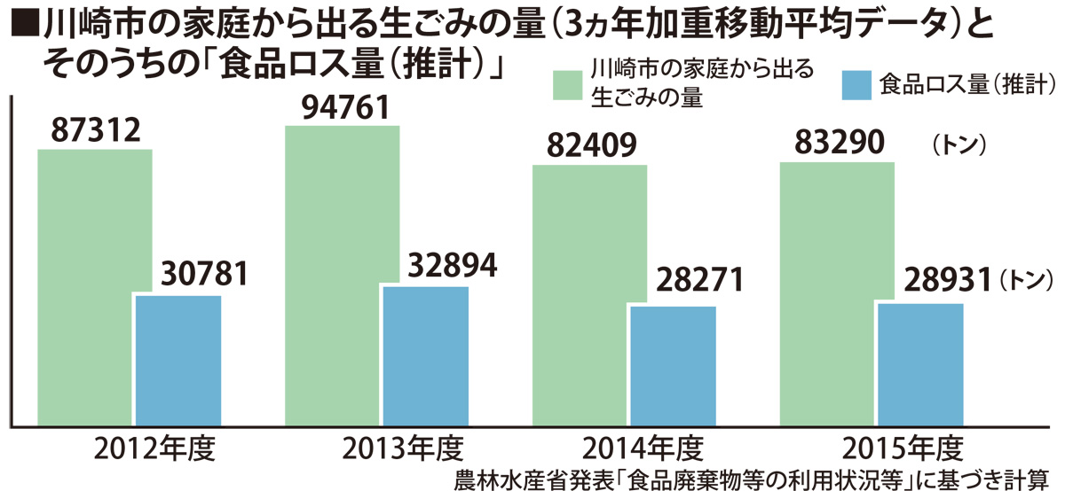 川崎市によると、市内の食品ロス年間排出量は約1万8872トン(17年度)。食料の不要な買い込みや贈答品の余り、野菜の皮の過剰除去が主な原因とされる。