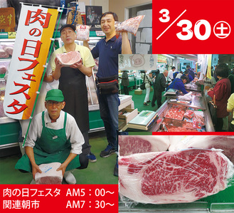 北部市場内の川崎市中央卸売北部市場商業協同組合(通称:関連=齊藤幸雄理事長)は3月30日(土)、「朝市」と「肉の日フェスタ」を開催する。