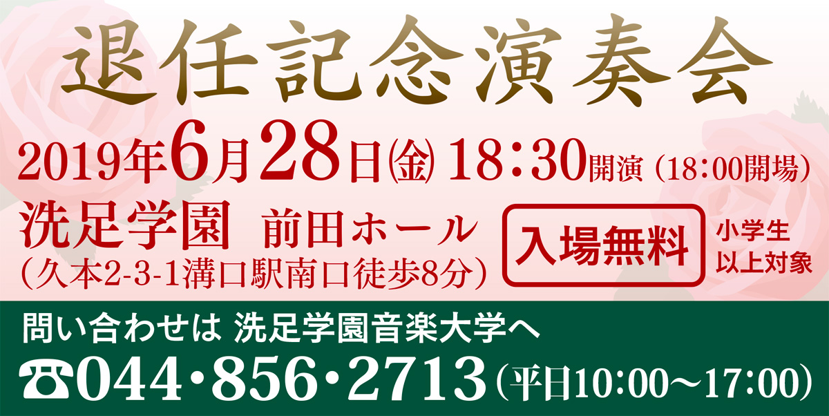 洗足学園音楽大学は、同大の教員を務め今年3月で退任した3人の音楽家による「退任記念演奏会」を6月28日(金)、同大前田ホールで開催する。