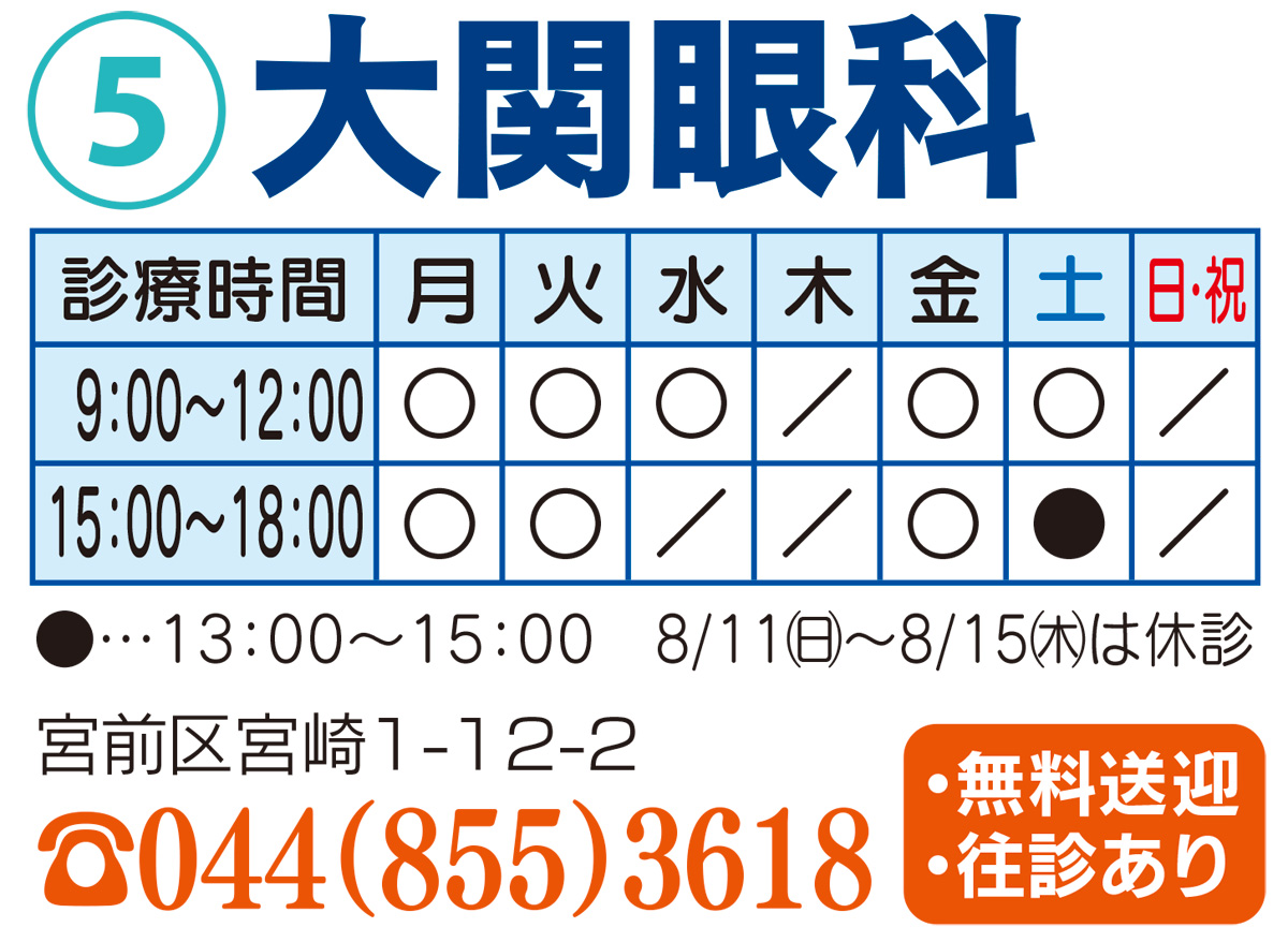 火曜日午後、水曜日午前中に大関眼科におりますので、まずは相談してみたいという方はお気軽にお越しください。