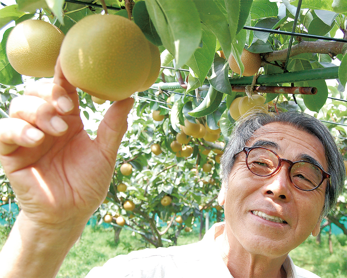 「正果園」では「幸水」「豊水」の他、「あきづき」など様々な梨を生産。近隣小学校の児童向けに「梨畑授業」も実施している。