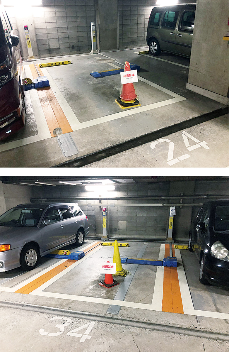 宮前市民館の地下にある駐車場のうち、2台分が利用停止となっている。