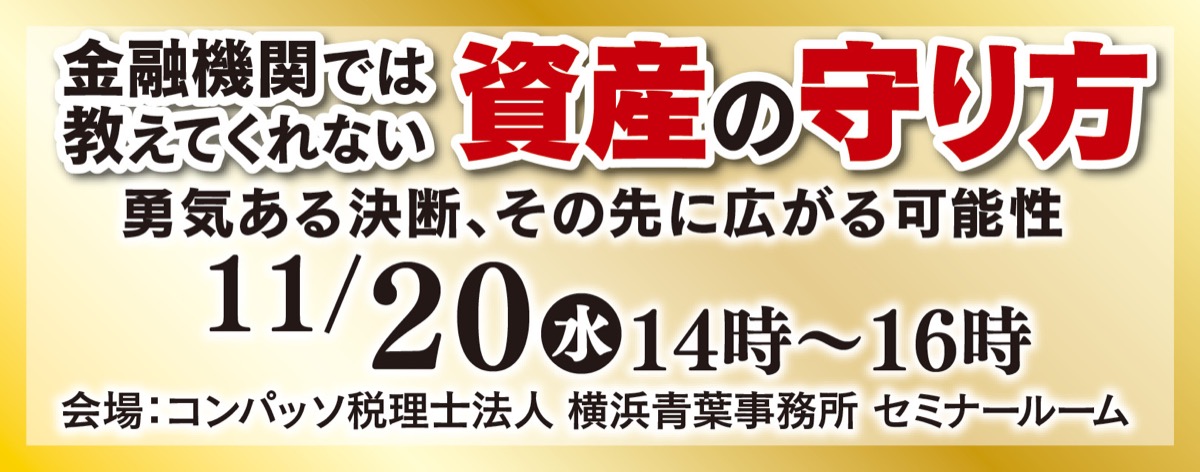 さまざまな悩みを持つ地主家族に向けて、大切な資産を守る人気セミナー第4弾「金融機関では教えてくれない資産の守り方〜勇気ある決断、その先に広がる可能性〜」が11月20日(水)、あざみ野で開催される。講師は地主専門「資産防衛コンサルタント」として注目を集める松本隆宏氏。自身も地主家族出身である松本氏が、地主家族ならではの悩みや資産の活用法等について実践的な内容を交えながら解説する。時間は14時〜16時。事前申込制で先着20組、無料。