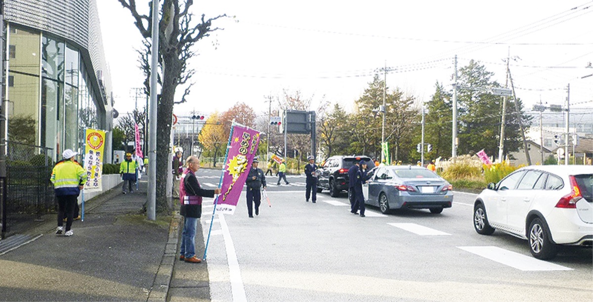 参加者は東名川崎ICや尻手黒川道路を通行するドライバーに対して、のぼり旗、ハンドプレートによる注意喚起や啓発物を配布しながら交通安全を呼びかけた。