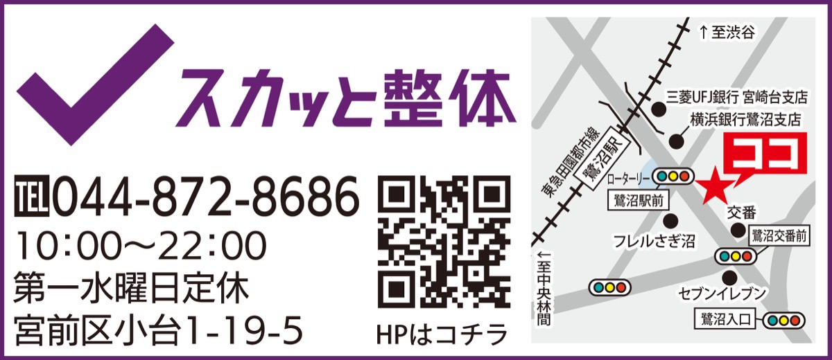 姿勢の根本施術が話題の鷺沼駅前『スカッと整体』では、豪華景品の当たる川柳の応募を受け付けている。4月末まで。