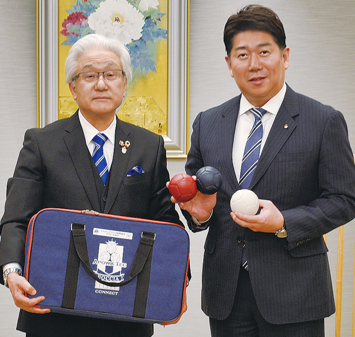 寄付したのはボッチャボール2セットとレク用ボッチャシート4枚で、総額約52万円。山本ガバナーは「体験会は中止になったが、身体障害者に寄り添いたいという気持ちは変わらない。市で活用してもらえれば」と話した。福田紀彦市長は「東京五輪パラリンピックは延期となったが、パラ競技の普及は変わらず続けていきたい。用具がその起爆剤になれば」と感謝の意を示した。