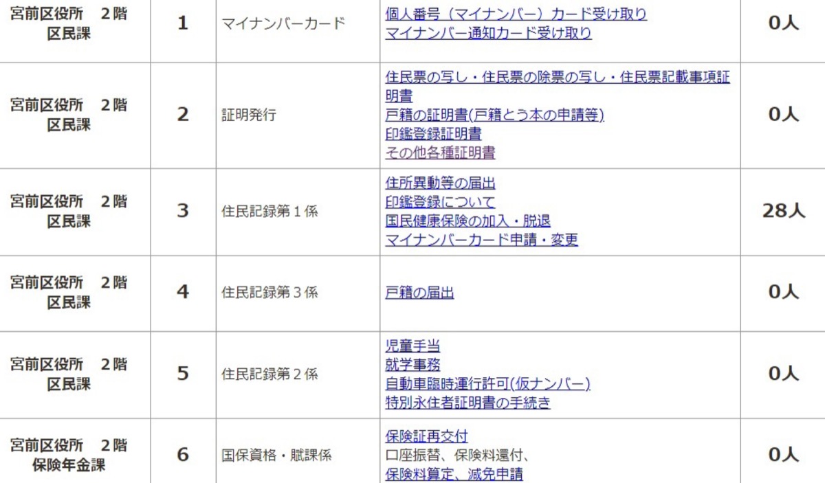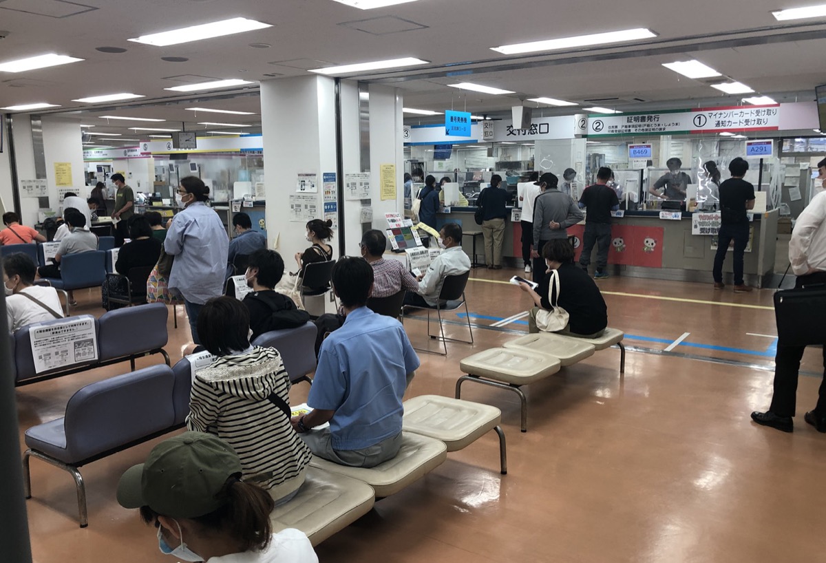 マイナンバーカードの申請や変更手続きに対応する宮前区役所区民課は申請開始から混雑が続いている。同課担当者は「8時30分の開庁から30から40人ほど並んでいる。普段はこんなことはない」と話す。