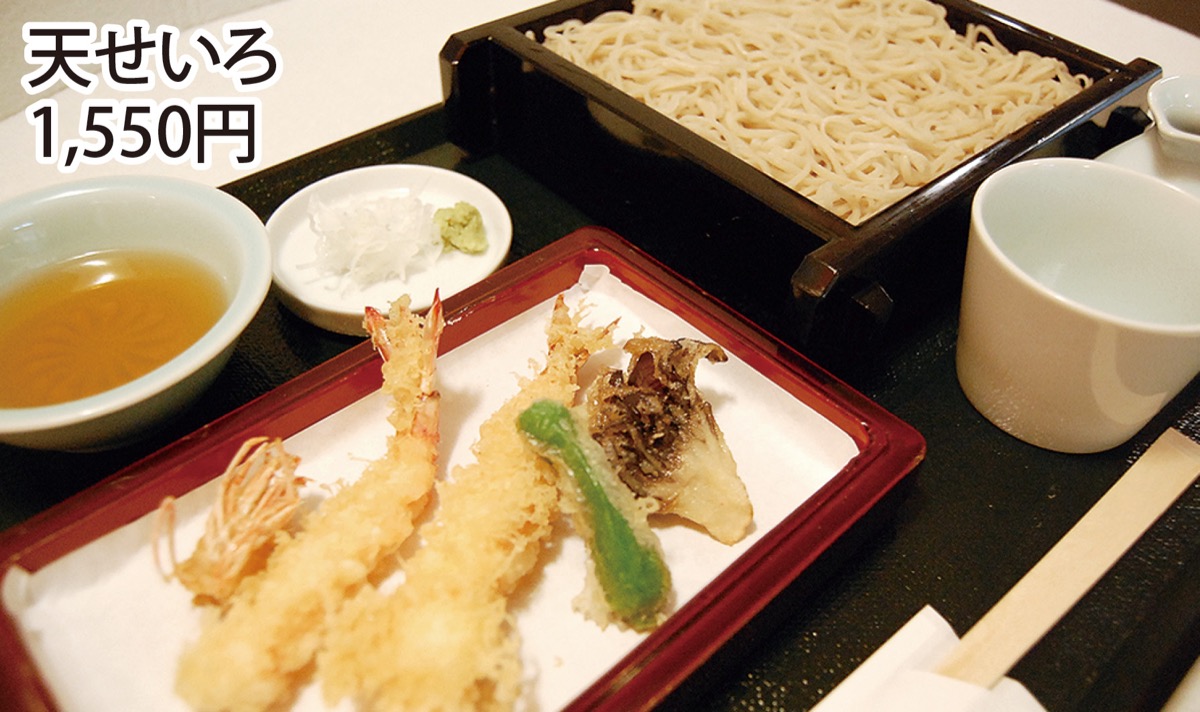 店内の一押しは市場で仕入れる活車海老の天ぷらをお手頃価格で味わえる「天せいろ」。蔵元直送の地酒も各種取り揃え。お一人様での利用も多く、そば屋の肴をお供にゆったりとした時間が過ごせる。