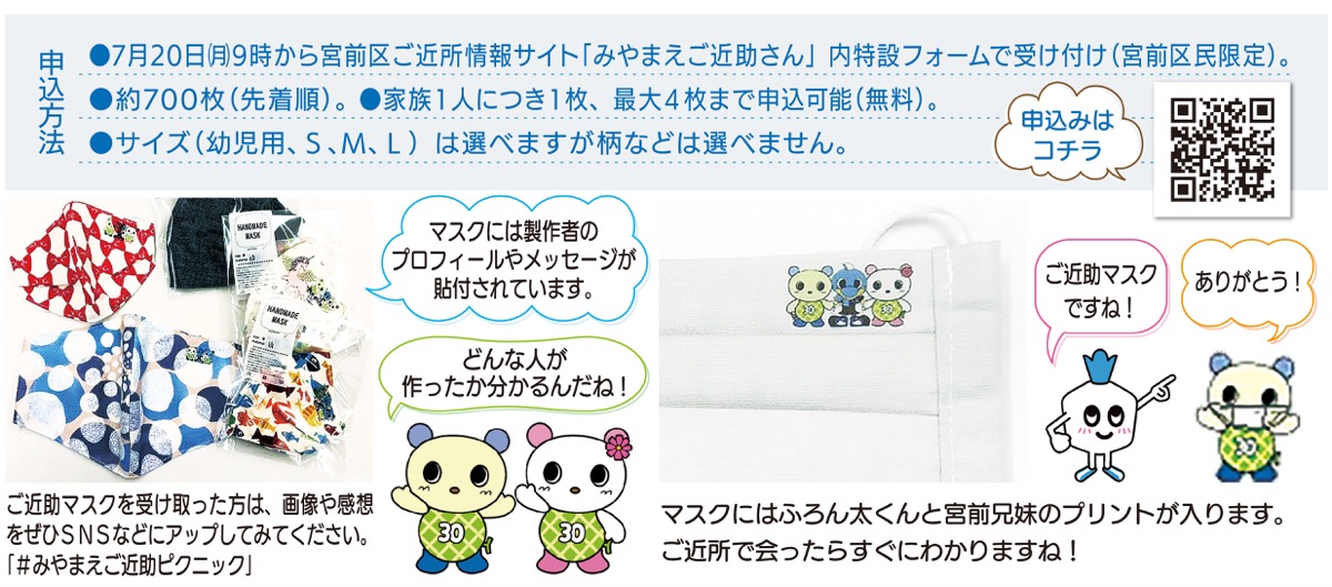 実行委員会では、昨年度のイベント開催で培ったつながりや、町内会・自治会のネットワークを生かして「手づくりマスク寄付プロジェクト」を企画。布製マスクの製作者を募り、買い取ったマスクを必要な人にお届けする。7月20日からウェブで申し込み受け付けを開始する。
