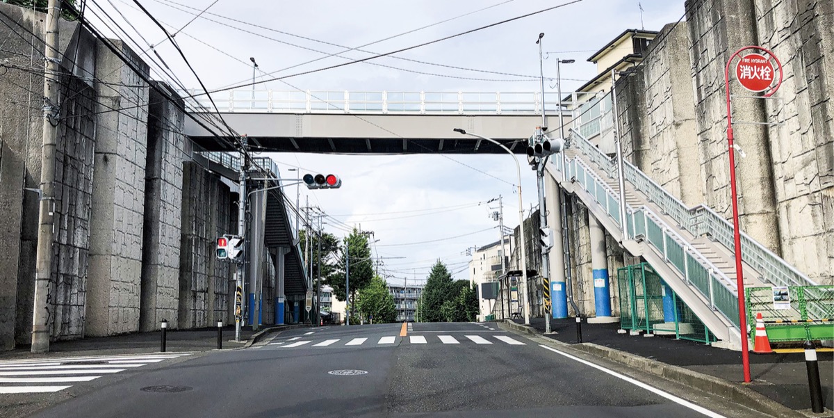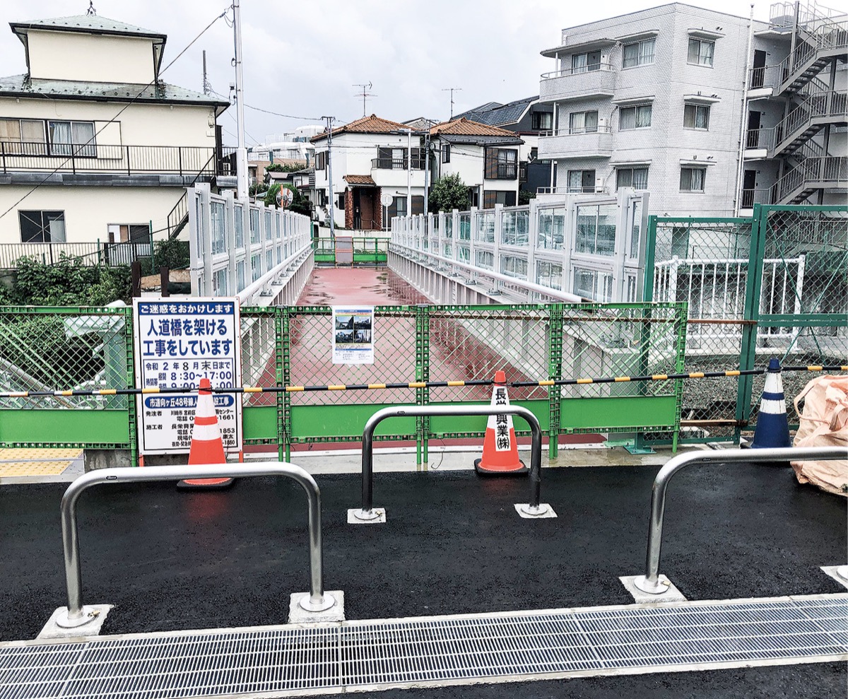 川崎市が進めていた犬蔵小学校バス停上の陸橋=写真=架設工事が完了し、9月14日(月)午前9時に開通する。