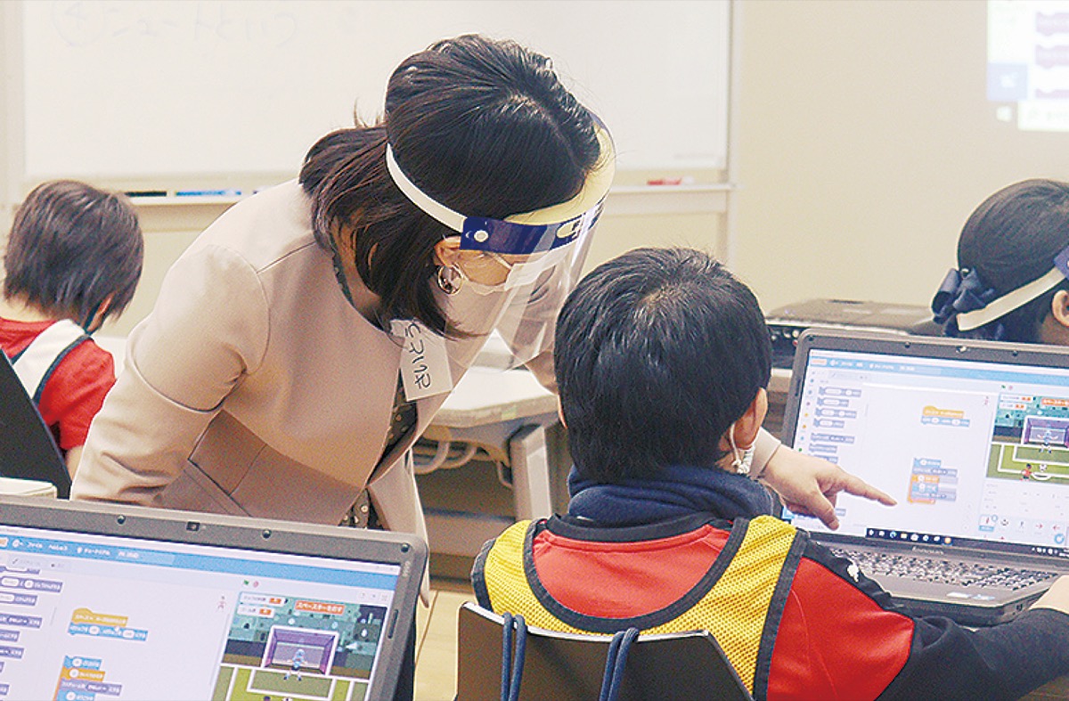 プログラミングの時間と実践の時間を2回ずつ交互に設け、それぞれ富士通オープンカレッジ武蔵小杉校の講師と川崎フロンターレスクール普及コーチが指導。プログラミングには、子ども向け学習ツール「Scratch(スクラッチ)」を活用した、川崎Fコーチ監修のコンテンツを用いた。参加した子どもたちは、Scratchで動きや音などを指示するブロック同士を連結させ、PK戦のゲーム作りに挑戦。実践で学んだ正確なキックの歩数やボールとの距離感などを落とし込んで完成させた。