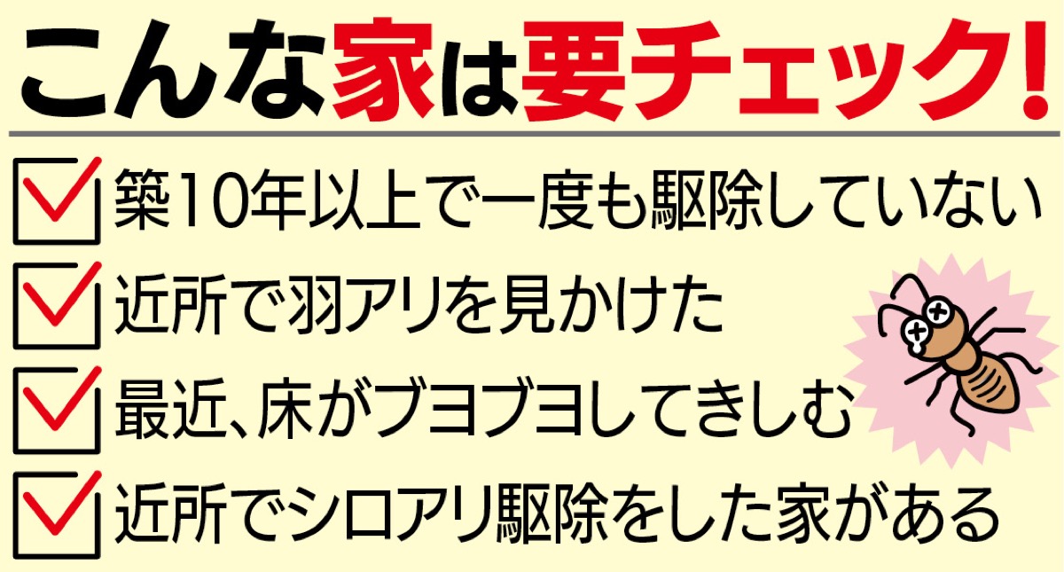 気温が上がる5月から夏前はシロアリの繁殖期。駆除するなら今がチャンスだ。