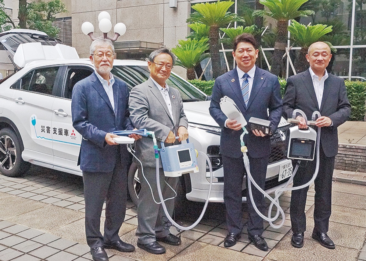 三菱自動車の若林陽介執行役員は「医療機器への給電はかねてからの課題だった。これを機にさまざまな場面で貢献をしていきたい」とあいさつ。福田市長は「停電時に不安を感じてきたが、医療機器を使用している在宅患者の方の安心につなげることができる」と語った。